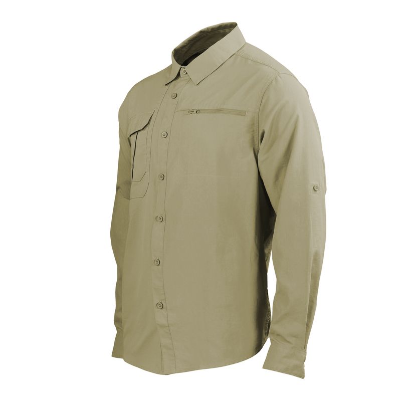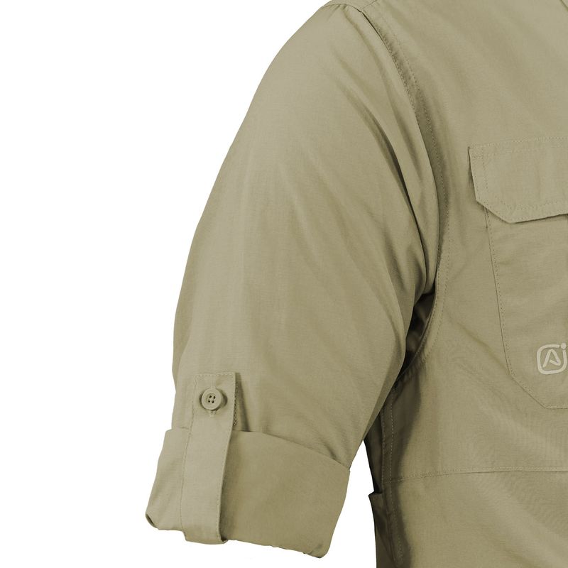 100% nylon ripstop de 90 gsm, esta camisa ofrece una estructura ligera y antidesgarro diseñada para soportar el roce con vegetación, rocas y equipo. Su tejido de secado rápido expulsa la humedad corporal de manera eficiente, ayudando a mantener el confort incluso en días de alta demanda física.