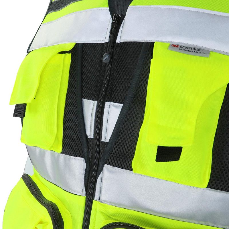 Chaleco Geólogo Activex Miner Amarillo Alta Visibilidad con Cintas Reflectantes 3M Scotchlite 2” 360°, Espalda en “X”, Forro de Malla y Bolsillos Multifuncionales